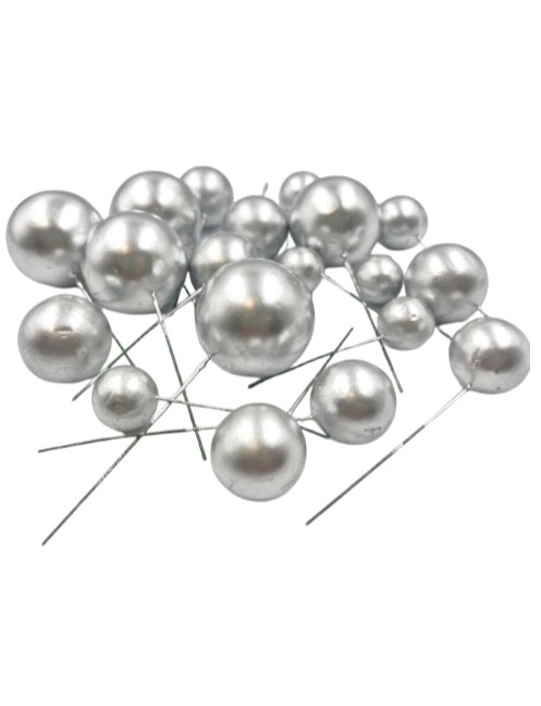20’li Gümüş Pasta Üstü Dekorasyon Topları